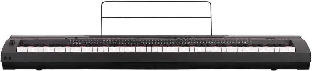 Sistema de audio: Amplificación integrada: Dos altavoces de 20 watts cada uno (2x20W) ofrecen un sonido claro, potente y bien balanceado, ideal para entornos cerrados o presentaciones pequeñas. Accesorios incluidos: Fuente de alimentación. Atril para partituras. Manual de usuario. Pedal de sustain.