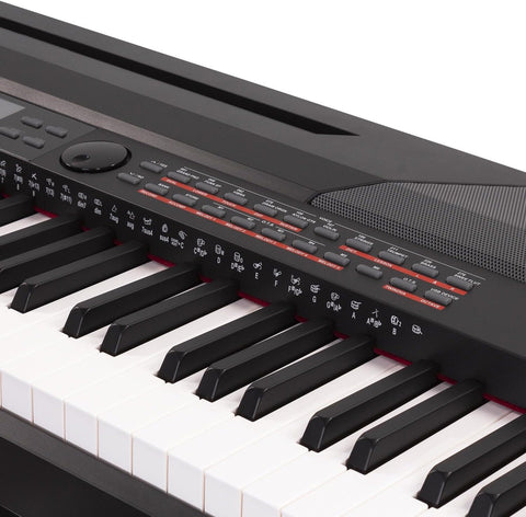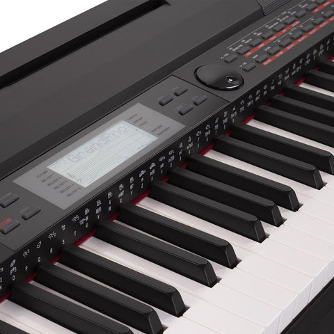 - Teclado: 88 teclas con acción de martillo contrapesada, con sensación similar a un piano acústico. Pantalla: LCD intuitiva para navegar ajustes y menús. Polifonía: Hasta 128 notas simultáneas para interpretaciones complejas. Voces: 600 sonidos, desde pianos, órganos y cuerdas hasta sintetizadores y percusiones. Estilos: 230 ritmos integrados + 10 personalizables. Canciones: 120 integradas para práctica o interpretación. Registro: Guarda hasta 48 configuraciones. Demostraciones: 5 canciones de sistema. Grabación: 1 pista con hasta 5 canciones grabables.